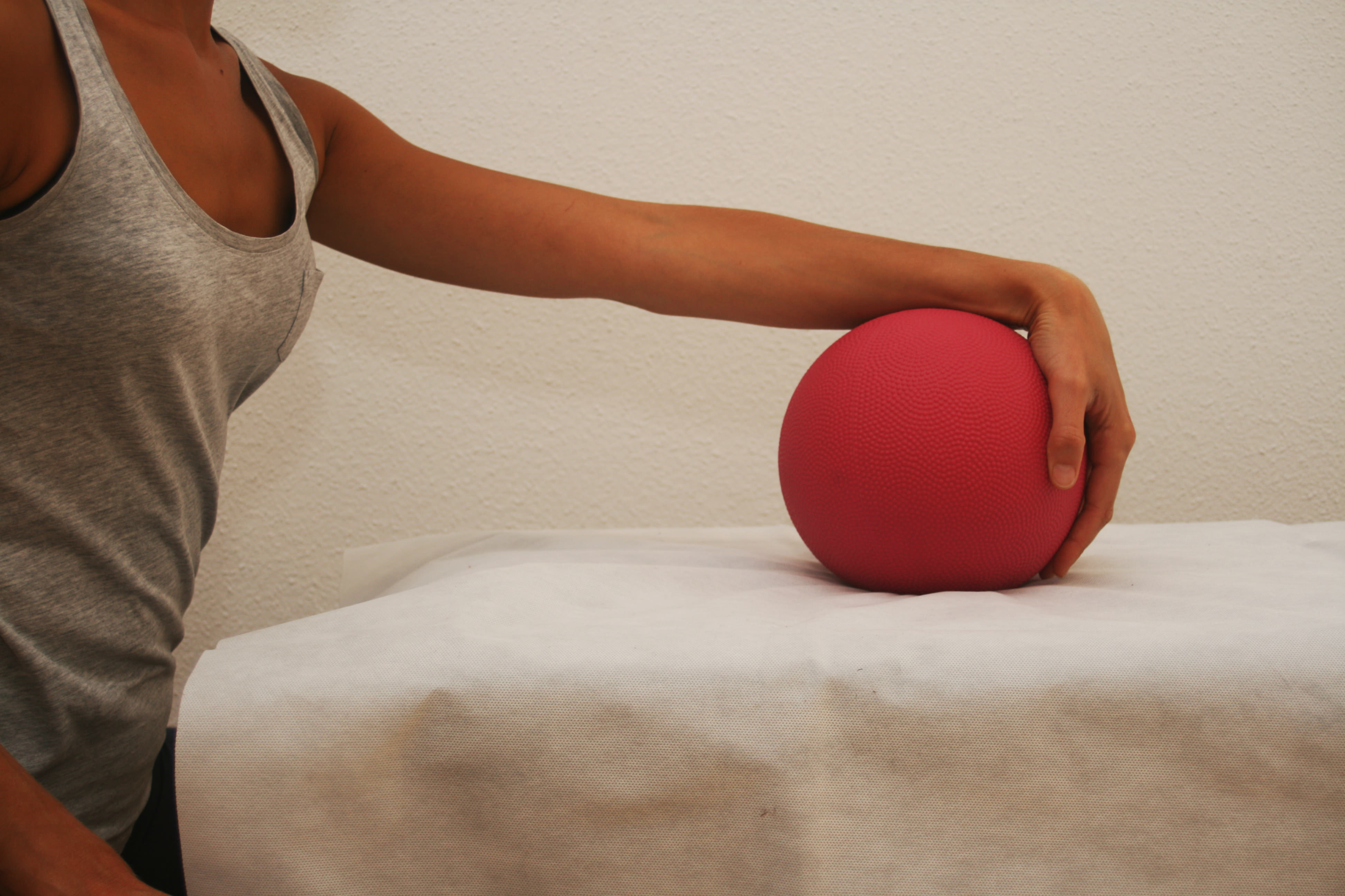 - Vous pouvez vous servir d’un ballon pour mobiliser le poignet en flexion