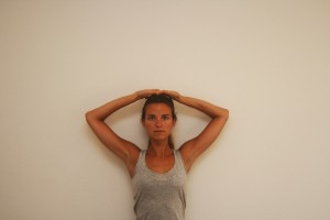 Debout, mains sur la tête, paumes vers le sol. Poussez les mains vers le plafond en dégageant bien les omoplates. Redescendez, reposez trois secondes les mains sur la tête. Répétez quatre fois.